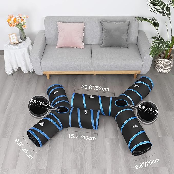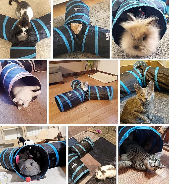 - GREAT FUN FOR YOUR PET: 3 spacious connected tube tunnels appeal to cat to hide, stalk, bounce and chase with each other in it, encouraging healthy activity and bringing out your cat's natural hunting instinct.