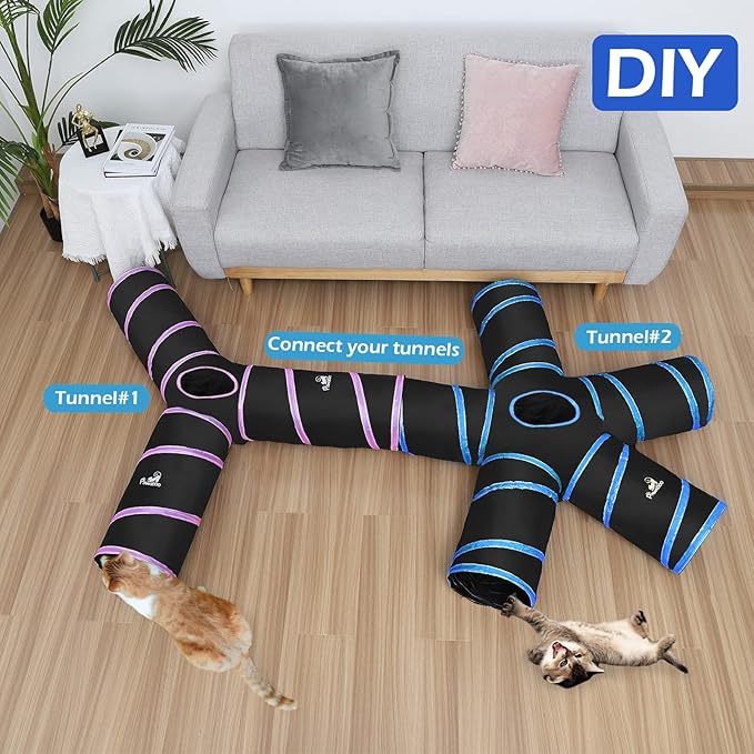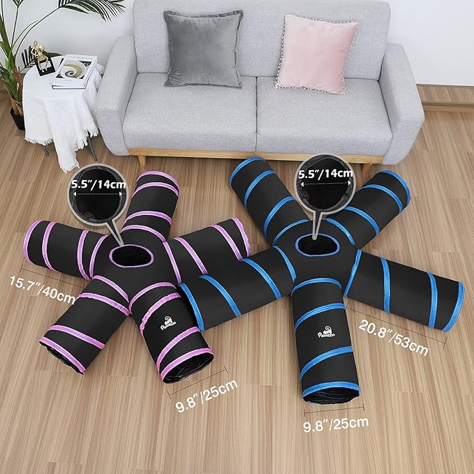 Pawaboo Cat Toys, Collapsible Tunnel Tube with Bells, 25x53cm, Blue