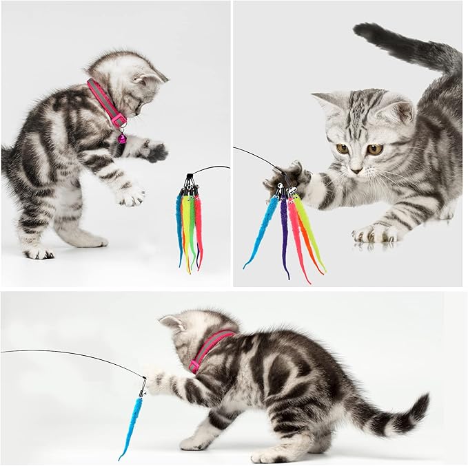 - EXERCIESE and FUN - Come with bell with rustling sound, it is easy to catch your cat's attention. Encourages instinctual behaviors and exercise to keep your cat healthy and alert.Used on any interchangeable cat wand and chaser toy with an eye hook connector.
