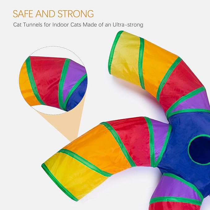 EGETOTA Cat Tunnel for Indoor Cats Large, with Play Ball S-Shape 5 Way Collapsible Interactive Peek Hole Pet Tube Toys, Puppy, Kitty, Kitten, Rabbit (Multicolor)