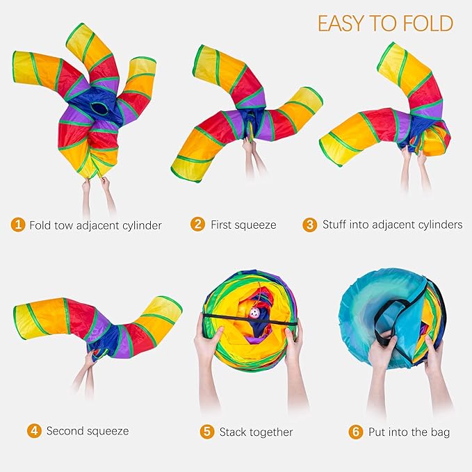- 【Toys for Kittens Easy to Clean】If your pet accidentally uses the cat tunnel as a toilet, you can flush it with a water pipe and let it dry naturally, it's going to take on a new look if there is a smell, you can put some good smell products in the cat tunnel before drying.