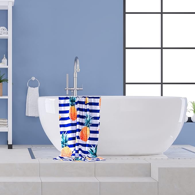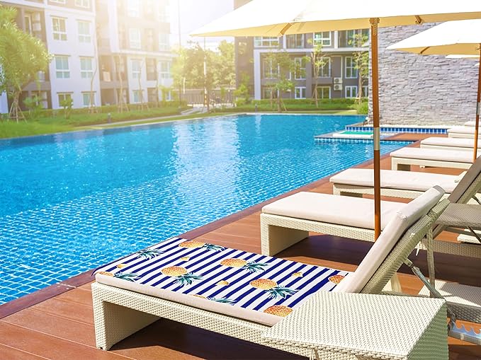 LIVILAN Oversized Striped Pineapple Beach Towel for Women Girls, 30”x60” Microfiber Thin Lightweight Super Absorbent, Quick Dry Sand Free Clearance Towel Pineapple Gifts