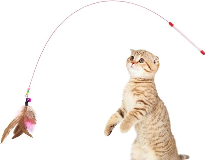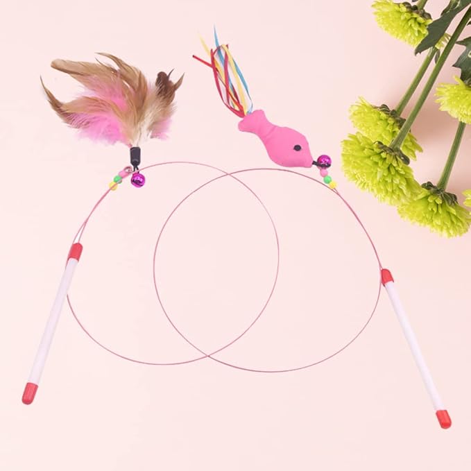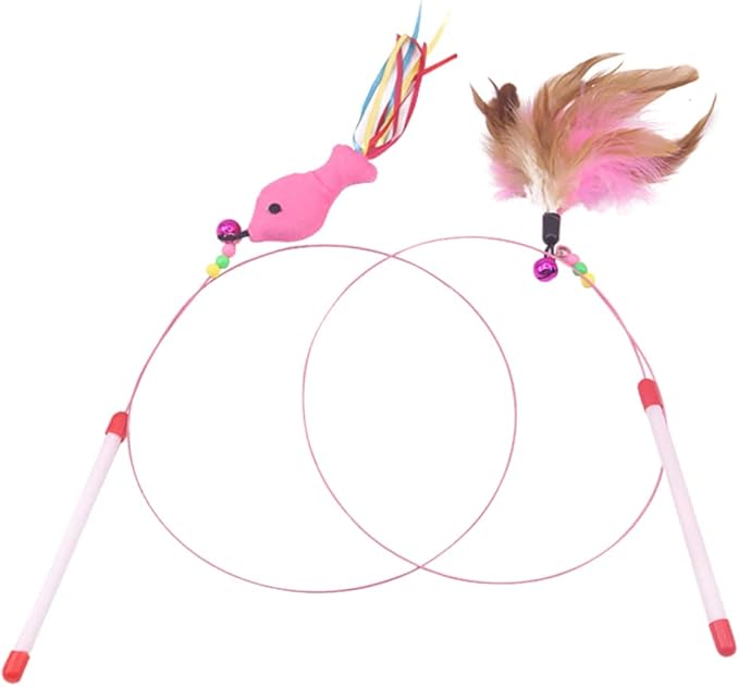 Cat Feather Toy Fishing Pole Toys, Interactive Cat Toys Wand, Bundle of 2 Pack Pet Cat Kitten Chaser Teaser Wire Wand with Bell Beads for Cat Exercise Play Fun