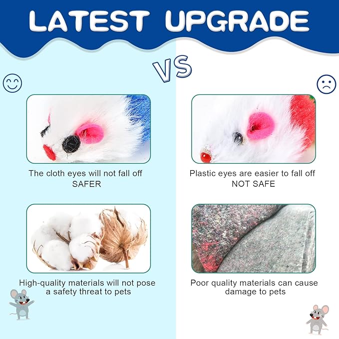 - NEW UPGRADE: The eyes are upgraded to cloth material, more safer. Originally made of plastic material, it will fall off after playing for a period of time, and cats are in danger of swallowing by mistake