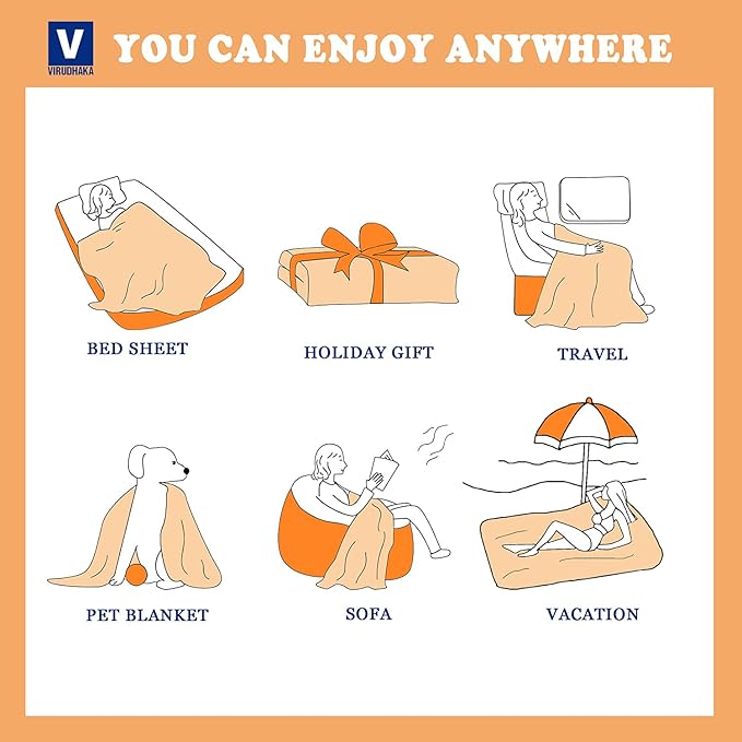 - ❤【Functional and Decorative】-Virudhaka soft lightweight blanket is perfect for watching TV, relaxing on the couch, or dressing up as a stylish bedspread. It can stay warm and enjoy family fun time while watching your family's favorite TV shows.Also protect your bed and couch from dirty and stain to keep them new and clean.It is also great for outdoor use! Especially when traveling for camping backpacking and picnic outings, it will provide you uninterrupted warmth throughout the seasons.