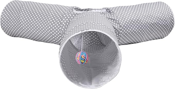- Fun. Our cat tunnel is designed with three pathways, a central peek-a-boo opening on top, and a vibrant color scheme.