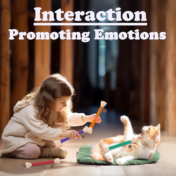 - 2.[ Durable & Bite Resistant]:The material to nature to attract cats to play material,which has a strong attraction to cats' sense of smell. Lafite flower and polyvine filling fruit gnawing snack candy, hemp rope fixation makes the cat stick toy more bite resistant.