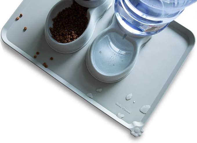 Hoki Found Large Silicone Pet Food Mats Tray - Non Slip Pet Dog Cat Bowl Mats Placemat - Dog Pet Cat Feeding Mat - Waterproof Dog Cat Food Mats -Pet Water Mats for Floors - Battleship
