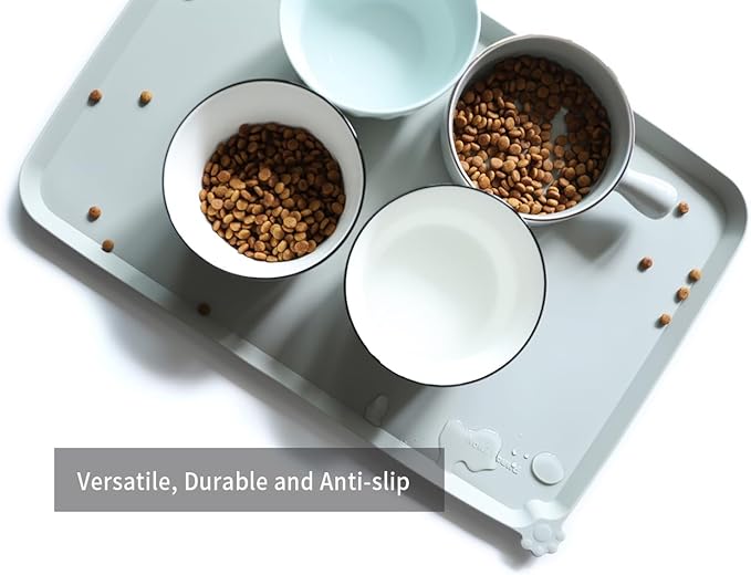 Hoki Found L Silicone Pet Food Mats Tray with Higher Lips - Non Slip Pet Dog Cat Bowl Mats Placemat - Dog Pet Cat Feeding Mat - Waterproof Dog Cat Food Mats -Pet Water Mats for Carpet - Battleship