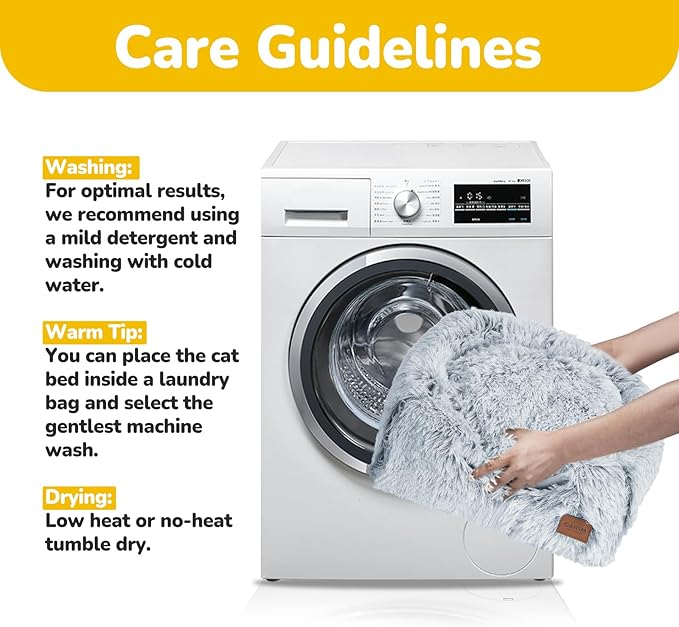 - 【Easy to Clean】Hand washing is recommended to maintain the quality of the cat bed. If machine washing, place the entire bed in the machine on a gentle cycle with cold water, and tumble dry on low heat afterward (fluff up the bed before use)