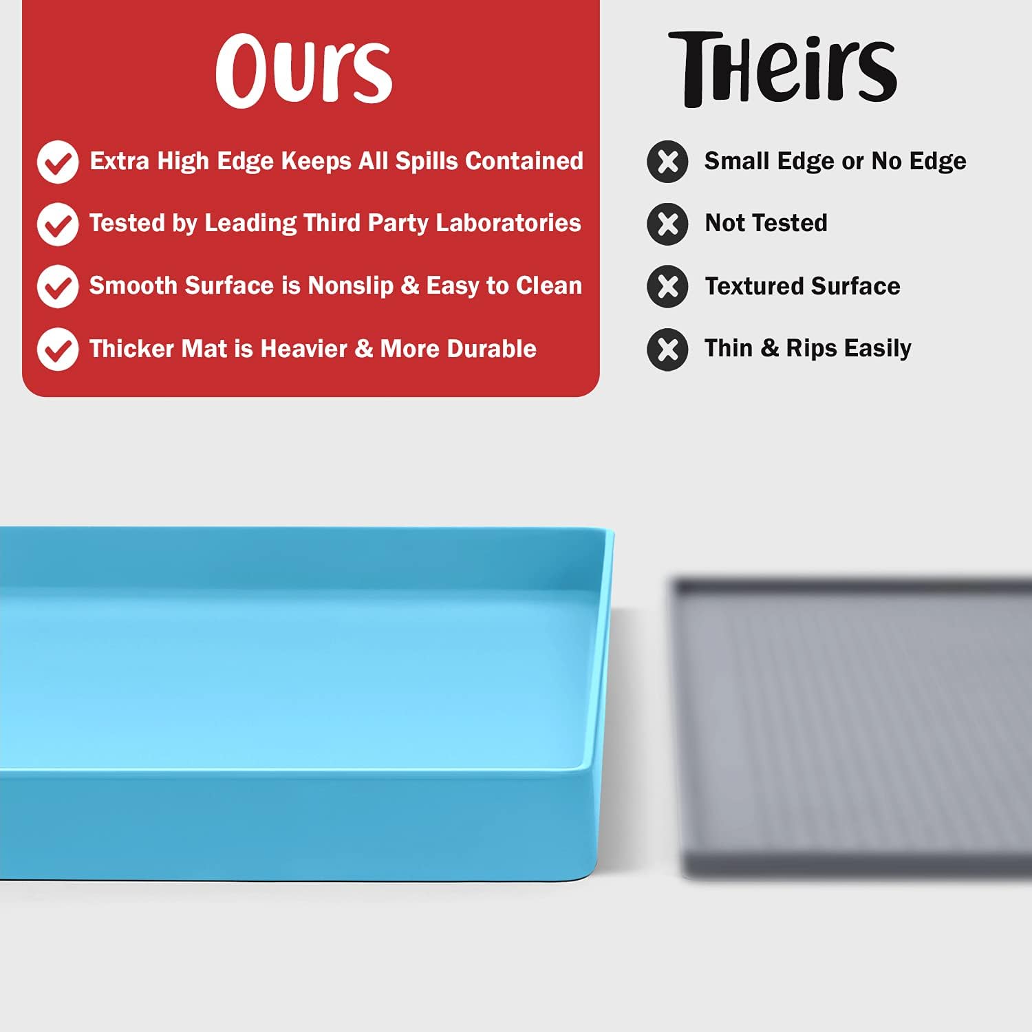 - Less Mess & Less Stress: Super high edge (0.6”) of DogBuddy Dog Food Mat keeps the spilled food and water on the mat and away from your beautiful floor. Silicone is naturally 100% waterproof, so what happens on the mat stays on the mat.