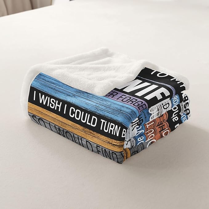 Feelyou Women Throw Blanket to My Wife Valentine's Day Sherpa Blanket for Bed Sofa Wife Couple Lover Fleece Blanket Breathable Chic Retro Wood Grain Style Warm Fuzzy Blanket Room Decor Twin 60"x80"