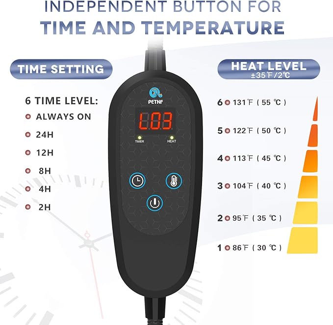 PETNF Super Large Heated Dog Bed Electric Pet Heating Pad for Dogs Cats with 6 Levels Timer and Temperatures,Waterproof Safety Cat Warming Pad Indoor Heated Cat Bed Mat for Large Dog(2XL)