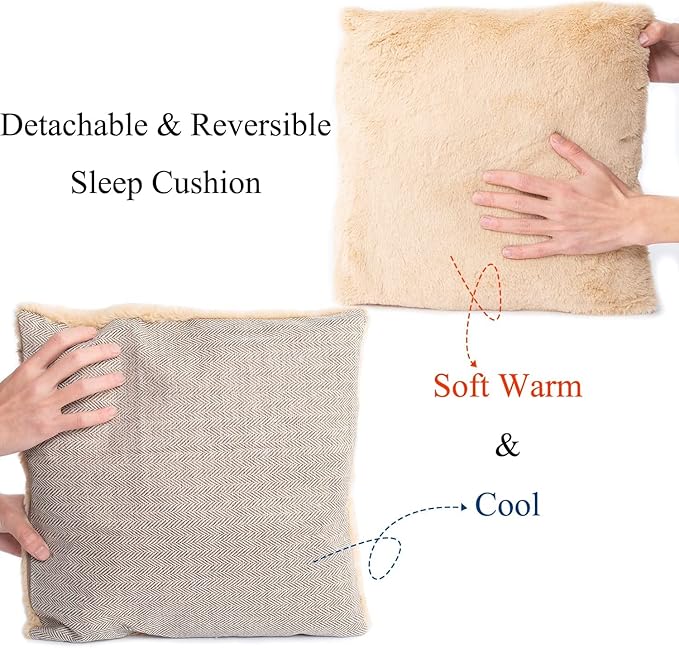 Cat Bed for Indoor Cats - Cat Cave Bed Cat House Cat Tent with Removable Washable Cushioned Pillow, Soft and Self Kitten beds,Cat Beds & Furniture, Pet Bed (Large, Beige)