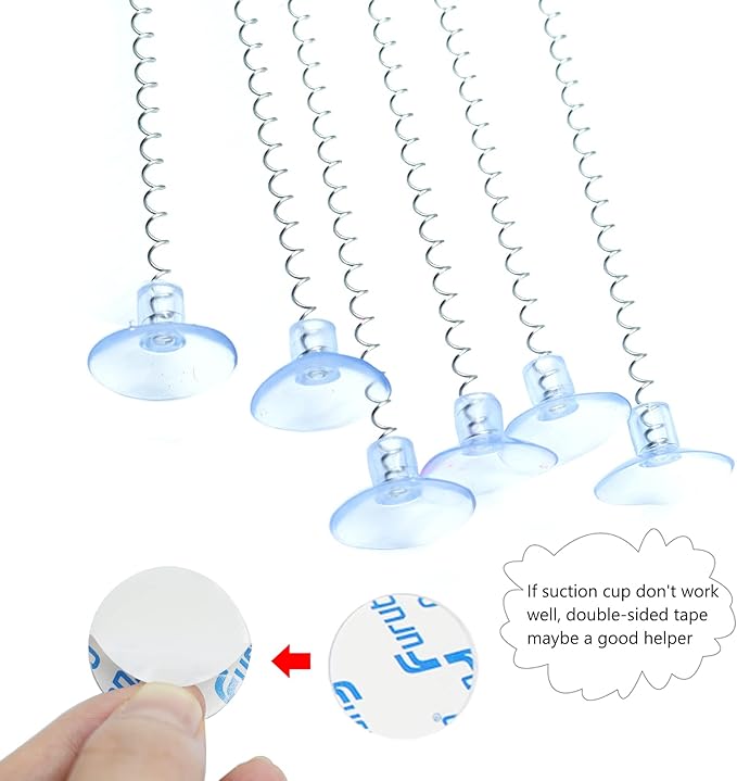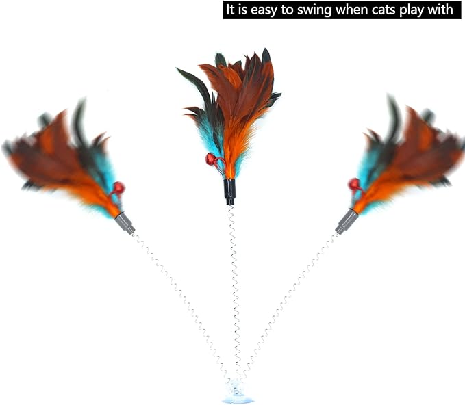 - PACKAGE INCLUDES - 6 spring sticks with feathers, 6 suction cups and 6 double-sided tapes