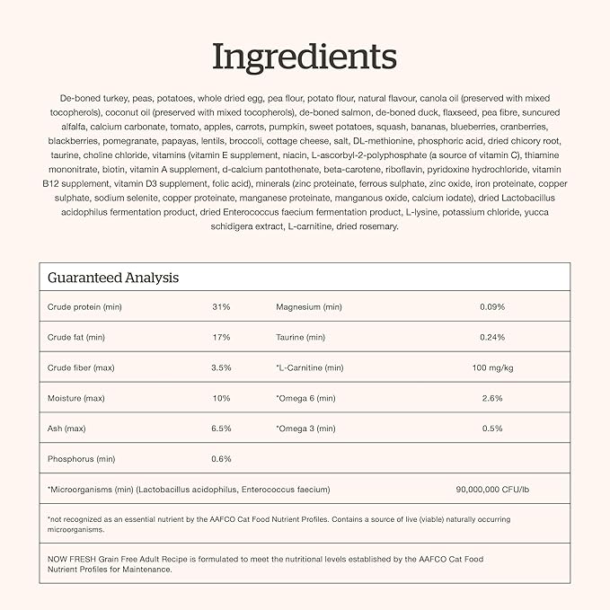 - 1st ingredient is Fresh Turkey: Made with fresh, de-boned turkey, salmon and duck, our formula provides highly digestible protein to help adult cats maintain strong, healthy muscles. Great as an indoor cat food!