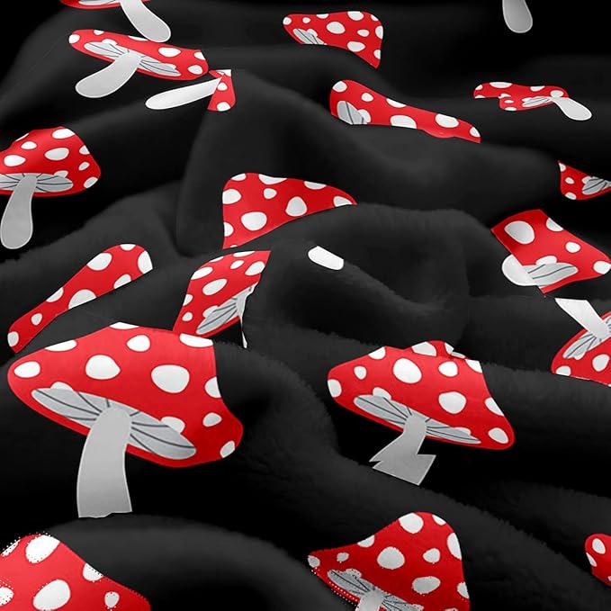 Feelyou Cute Mushrooms Plush Throw Blanket Red Mushrooms Sherpa Blanket Natural Wild Fungus Fleece Throw Blanket Botanical Fuzzy Blanket for Kids Boys Girls 40"x50" Black