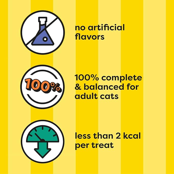 - 100% Complete and Balanced For Adult Cats: Feel great about treating your phenomenal feline with a cat treat that’s 100% nutritionally complete and balanced for adult cat maintenance