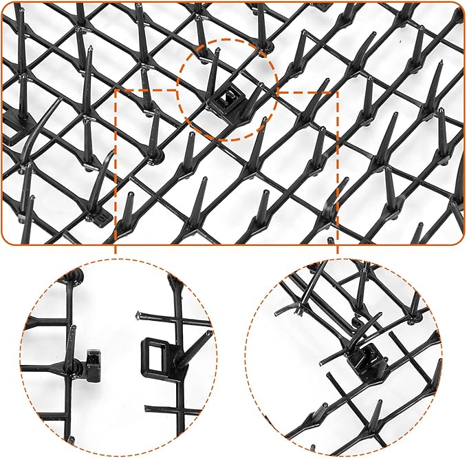 - Easy to Use: This pet deterrent mat can be easily paved and installed anywhere. You can easily cut the scat mat into smaller pieces, or combine to obtain larger animal spike pads according to your needs. The curved hook can be cut and fixed in the soil. Also, you can use the attached metal ground nails for futher fixtion