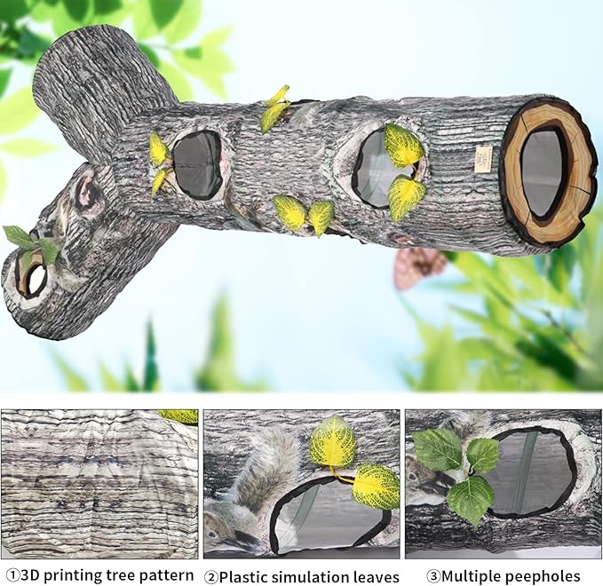 - 🐈 [Simulated Tree Texture]: Cat tubes and tunnels imitate the texture of trees in nature, decorated with leaves and squirrels, making the product more realistic and attracting your cat to play long and attentively. Can be perfectly integrated with interior home design