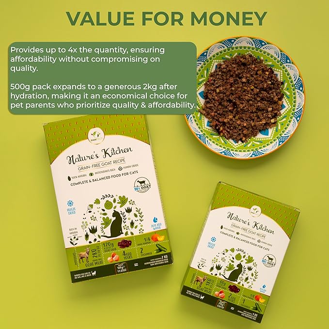 Nature's Kitchen Freeze Dried Cat Food - 100% Real Goat Meat | Grain-Free | Provides Omega3 & Iron | Maintains Healthy Bones | Healthy Cat Food | Single Source of Protein (17.64oz)