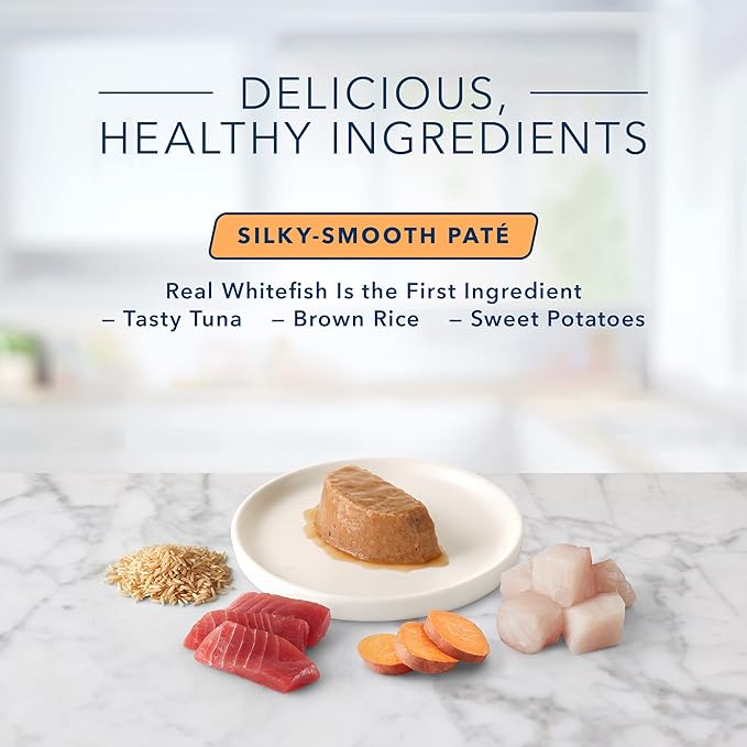 - DELICIOUS WHITEFISH FIRST: The first ingredient in this natural Blue Buffalo paté cat food is high-quality turkey in a silky-smooth texture your feline friend will love