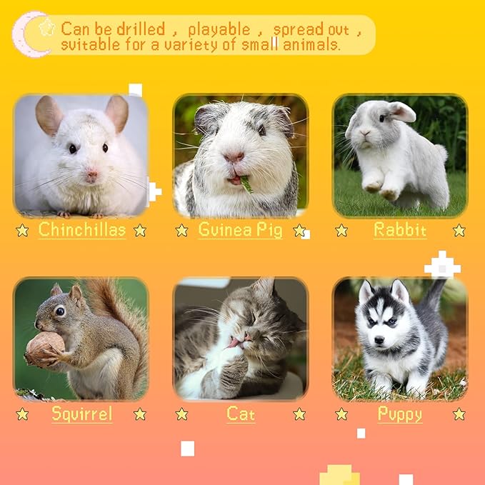 - Small Animals Tunnels - Tunnel length 46.8'', Tunnel diameter 10'', Mat length 21.4''. It's design for small pets for hiding out, exercising or sleeping.Fit for Small Animals like Guinea pigs, Dwarf Rabbits, Chinchilla, Ferrets, Hamster, Puppy, Kitten or other similar sized small pets.