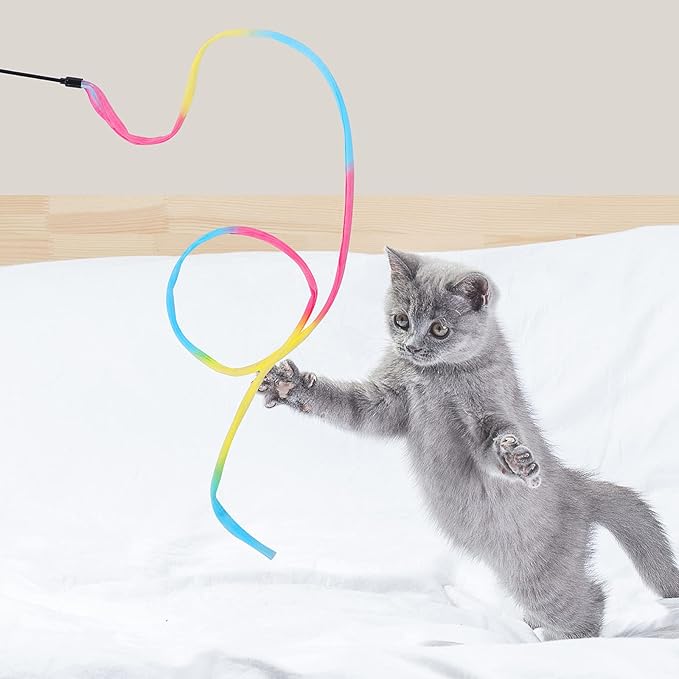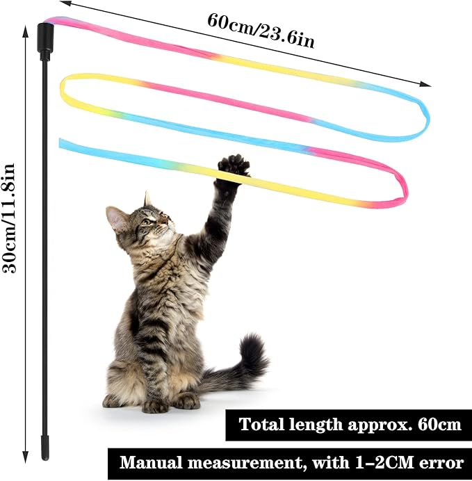 - 【Premium Quality Cat Wand Toys】The cat wand toy is made from soft, colorful satin fabric and a high-elastic wand. Do not let your pet use the product alone to prevent the risk of accidental ingestion.