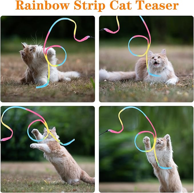 - 【Interactive Cat Toys】What cat doesn't like to play with string? It's a classic irresistible toy for cats or kittens! This cat String toy will have your cat leaping and pouncing while having fun! A colorful cat toy wand is a great way to attract your cat’s attention. Perfect for your cat's daily aerobic exercise needs!