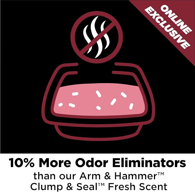 - POWERFUL ODOR CONTROL: With 10% more odor eliminators than our regular ARM & HAMMER Clump & Seal Fresh Scent cat litter—plus ARM & HAMMER baking soda—odors don't stand a chance. Use this litter to create the ultimate multi-cat litter box!