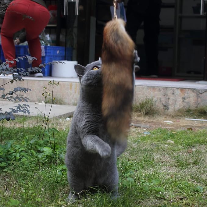 Fosrion Real Raccoon Tail Fur Cat Bites Toy with Three Section Retractable Carbon Fiber Rod (Sunny Fox, Only Tail)