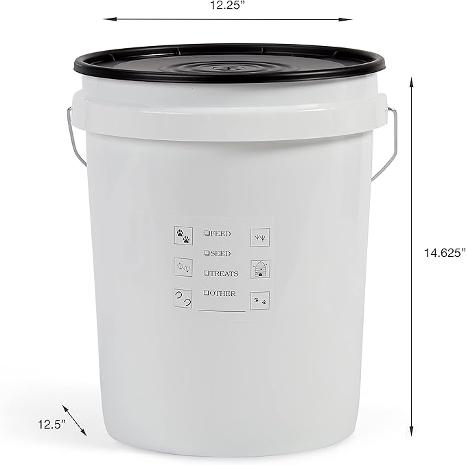 - SNAP-TIGHT LID – This 5 Gallon pet food container is equipped with a durable snap-tight lid to prevent your pets from getting into their treats or pet food. It also stays tight to prevent dog food, bird feed, or cat food from getting stale.