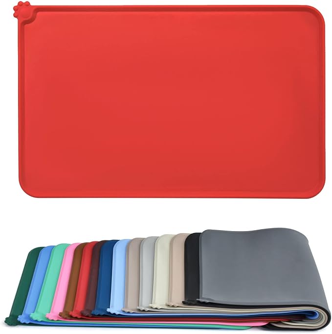 AUDWUD Silicone Waterproof Pet Feeding Mats,Anti Slip Bowl Pad, Dog Mat for Food and Water
