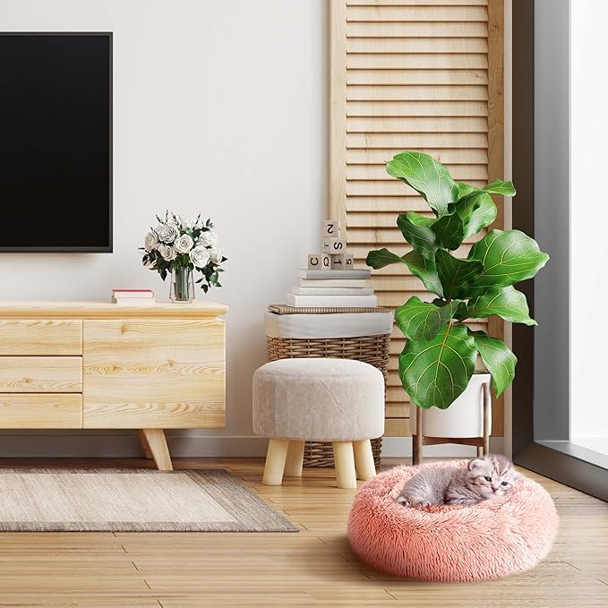 Max & Marlow Long Lush Faux-Fur, Anti-Anxiety Cuddler, Donut Dog & Cat Bed, Non Slip Bottom, Small, Pink