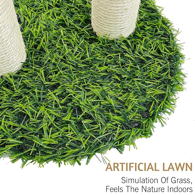 - Stable Lawn Mat: 11.8x11.8 inches circular particleboard base provides stability for the post without fear of shaking and moving; Green artificial lawn, providing a natural environment for cats to feel the comfort of nature without going outside