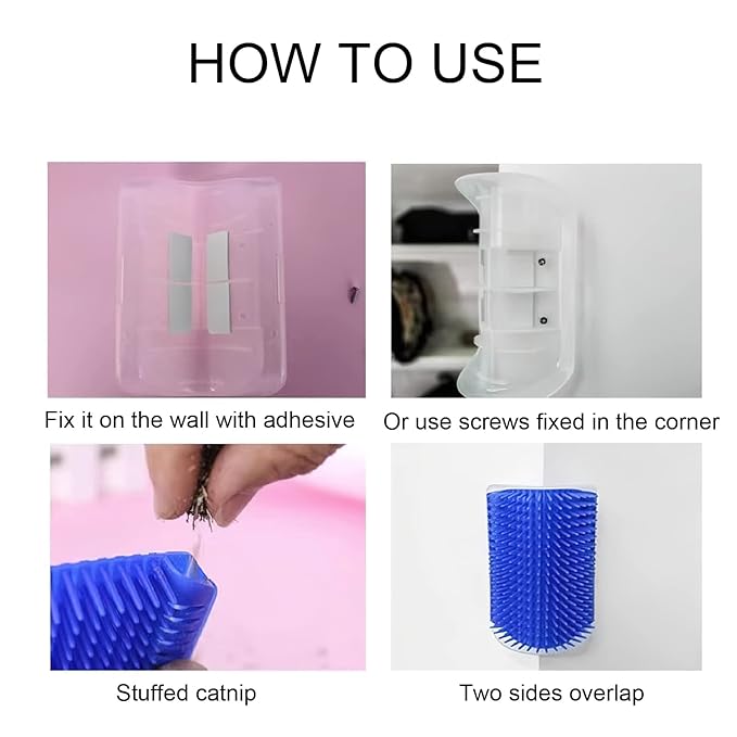 - Easy to Use- According to the level height of the cat, install on the corner of the furniture that the cat can touch. This self groomer is cat favorite toy. It can comb its hair while enjoying massage and scratching.