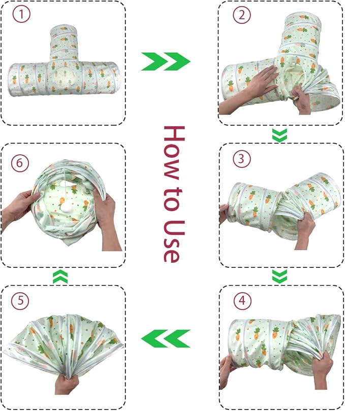 - 【Function】Small pets like rabbits cats naturally like to hide in tunnels. The 3 way small animal tunnel toy provides your pet a secure and enclosed space to sleep, burrow and play in it. Meanwhile it keep your pet active, promote their physical exercise and reduce boredom.