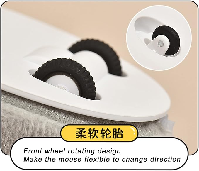 - [Flexible Tires] Soft rubber tires are designed with soft sound when sliding, and the front wheel can be rotated, allowing the mouse to flexibly change directions.