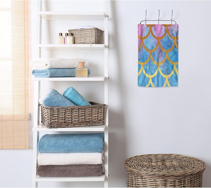 AOYEGO Pink Blue Mermaid Sequin Beach Towels Fish Scales Ocean Sea Hand Towels Kitchen Hand Towels Bathroom for Girls Women Men 15x30 Inch