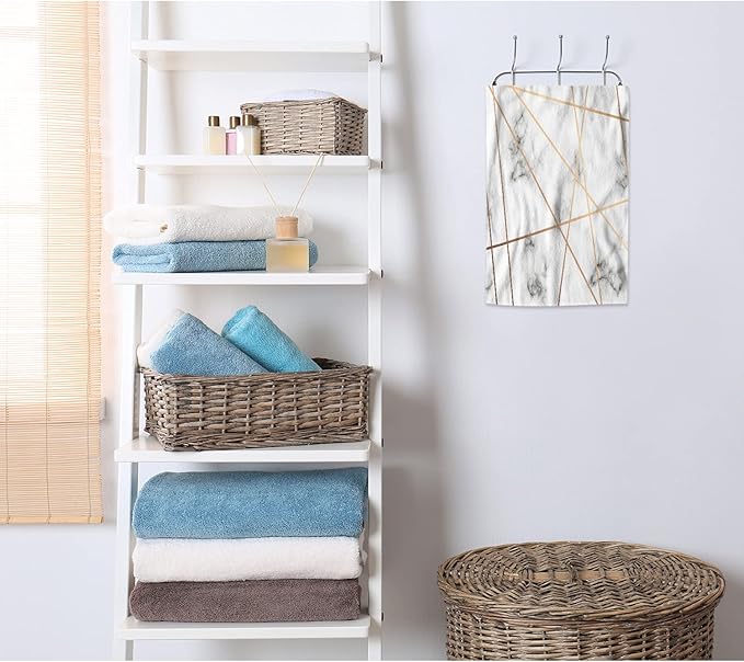 AOYEGO White Gray Marble Towels Golden Geometric Lines Marbling Surface Soft Highly Absorbent Large Hand Towels for Bathroom Hotel Gym and Spa 15x30 Inch