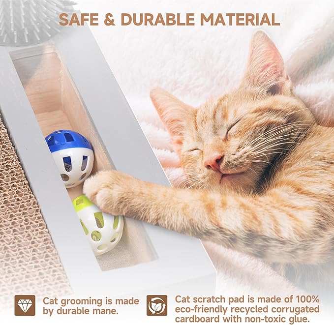 - 🐈⬛Safe & Durable Material : This cat grooming is made by durable mane,cat scratch pad is made of 100% eco-friendly recycled corrugated cardboard with non-toxic glue. Completely healthy and safe for your adorable cats.