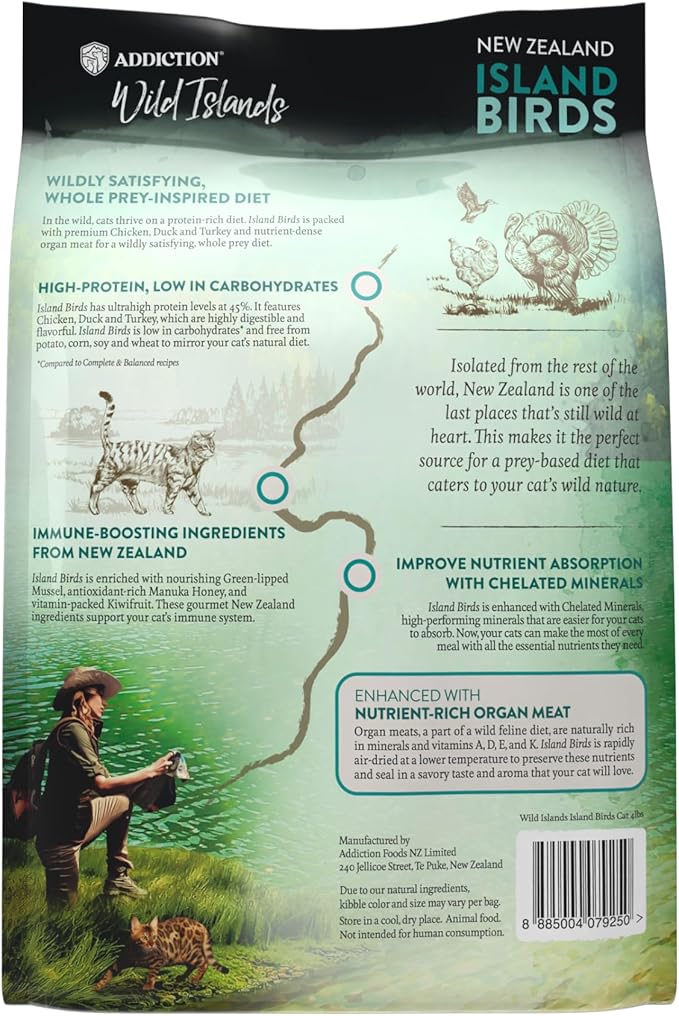 Addiction Wild Islands Island Bird Dry Cat Food, Premium Duck, Turkey & Chicken Recipe with High-Protein & Grain-Free Formula for Feline Health - 10lbs