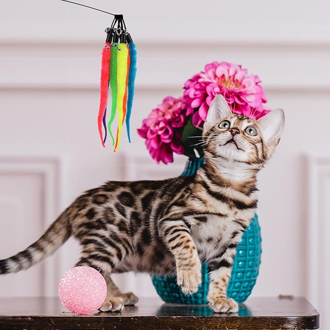 - 【12 PCS Cat Worms Refills】The package includes 12 pieces of replacement cat worm toys of cat interactive wand (Does Not Include Wands). Various colorful worm toys will bring out your cat's predatory instincts, and they will jump, pounce, kick and chase. They'll keep your cat energized, increase her exercise, keep her happy and healthy!