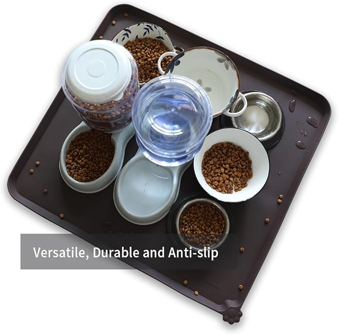 Hoki Found XX-Large Silicone Pet Food Mats Tray - Non Slip Pet Dog Cat Bowl Mats Placemat - Dog Pet Cat Feeding Mat - Waterproof Dog Cat Food Mats -Pet Water Mats for Carpet - Dark Oak