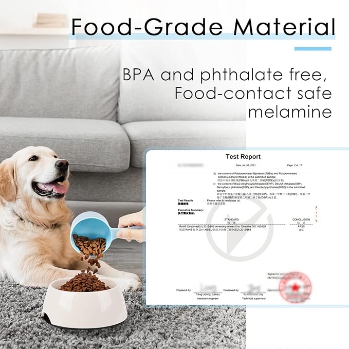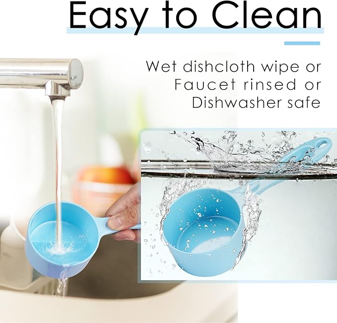 - [ HIGH QUALITY MATERIAL ] - Unlike fragile plastic scoops, our dog food measuring scoops are made of high quality melamine. The material is sturdy and durable, not easy to deform or break, ensuring long-lasting use.
