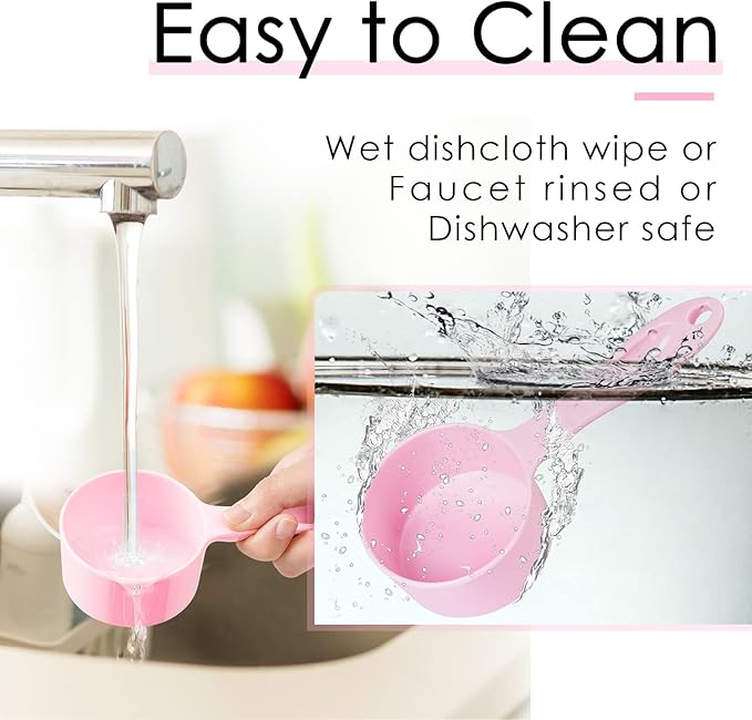 - [ HIGH QUALITY MATERIAL ] - Unlike fragile plastic scoops, our dog food measuring scoops are made of high quality melamine. The material is sturdy and durable, not easy to deform or break, ensuring long-lasting use.