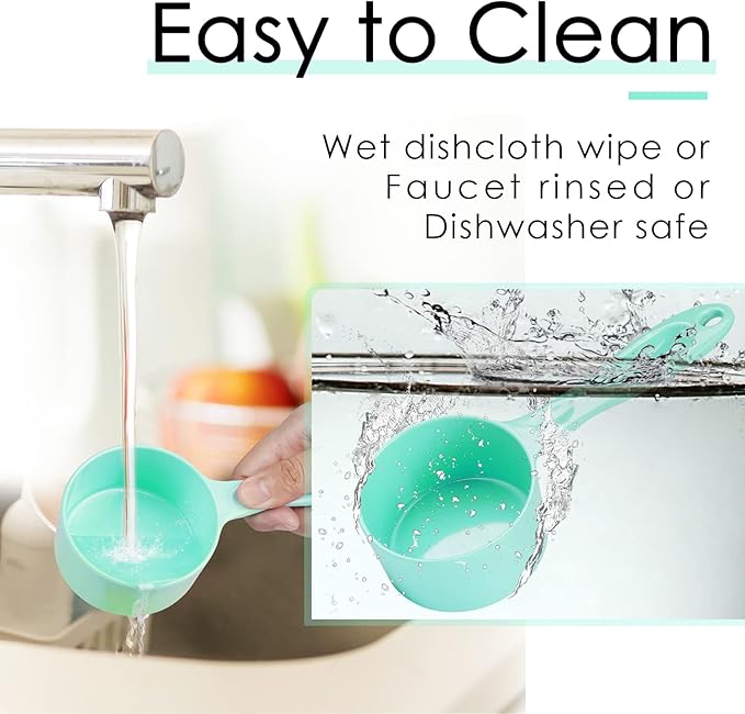 - [ HIGH QUALITY MATERIAL ] - Unlike fragile plastic scoops, our dog food measuring scoops are made of high quality melamine. The material is sturdy and durable, not easy to deform or break, ensuring long-lasting use.
