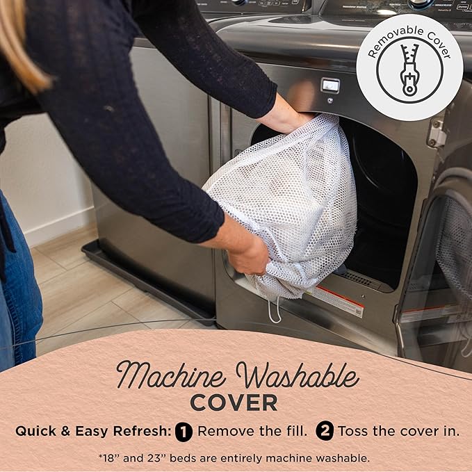 - Machine washable – the entirety of the 18" and 23" beds are machine washable; the removable shell on 30" beds are machine washable