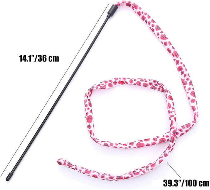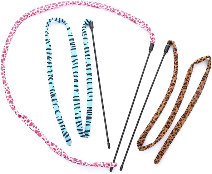 IUHKBH Cat Wand Toys, 3 PCS Flexible Cat String Wand Leopard Ribbon Cat Teaser Wand Cat Wands for Cat Training Exerciser