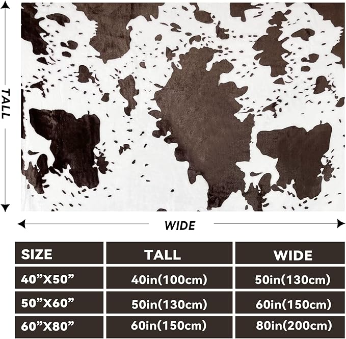 Soft Cow Print Blanket - Western Room Decor Cow Gifts for Women Girls Soft Sofa Bed Throw Brown 50x60 Inch